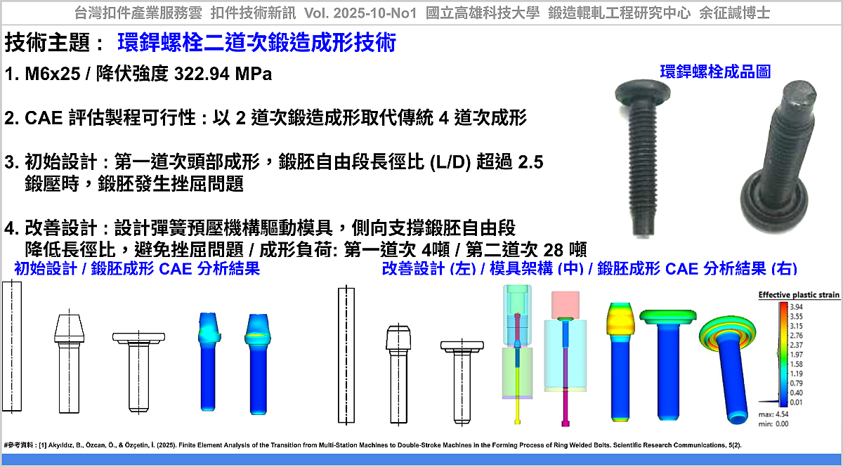 - 2025-10-No1-扣件技術新訊, 環銲螺栓二道次鍛造成形技術, https://www.tw-fastener.com/tfsc/knowledge/BLP_c75a194a-59e7-4655-bd30-fb94a5833e38