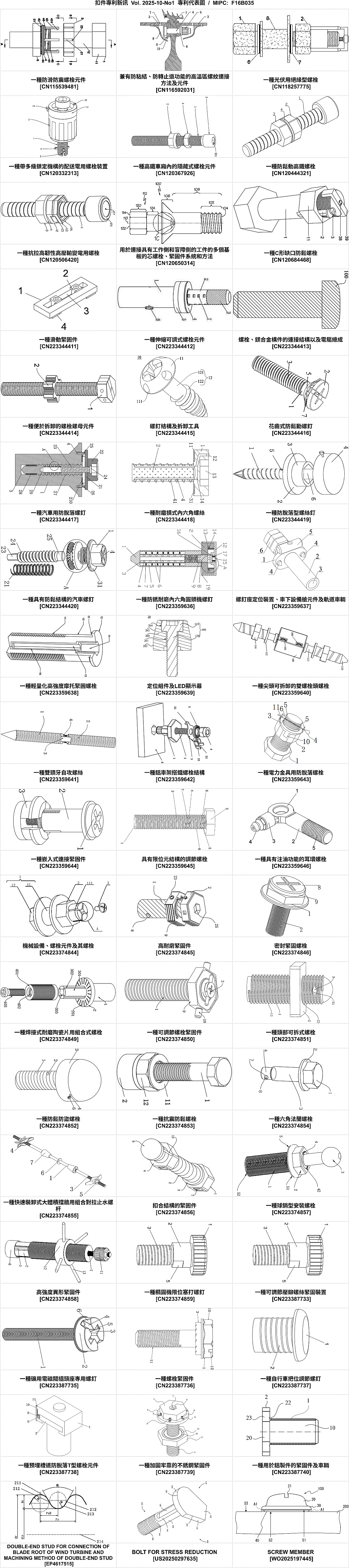 一、以『螺栓;支撐螺栓;雙頭螺栓;螺釘;止動螺釘』(F16B035)為主要IPC分類號之扣件相關專利: