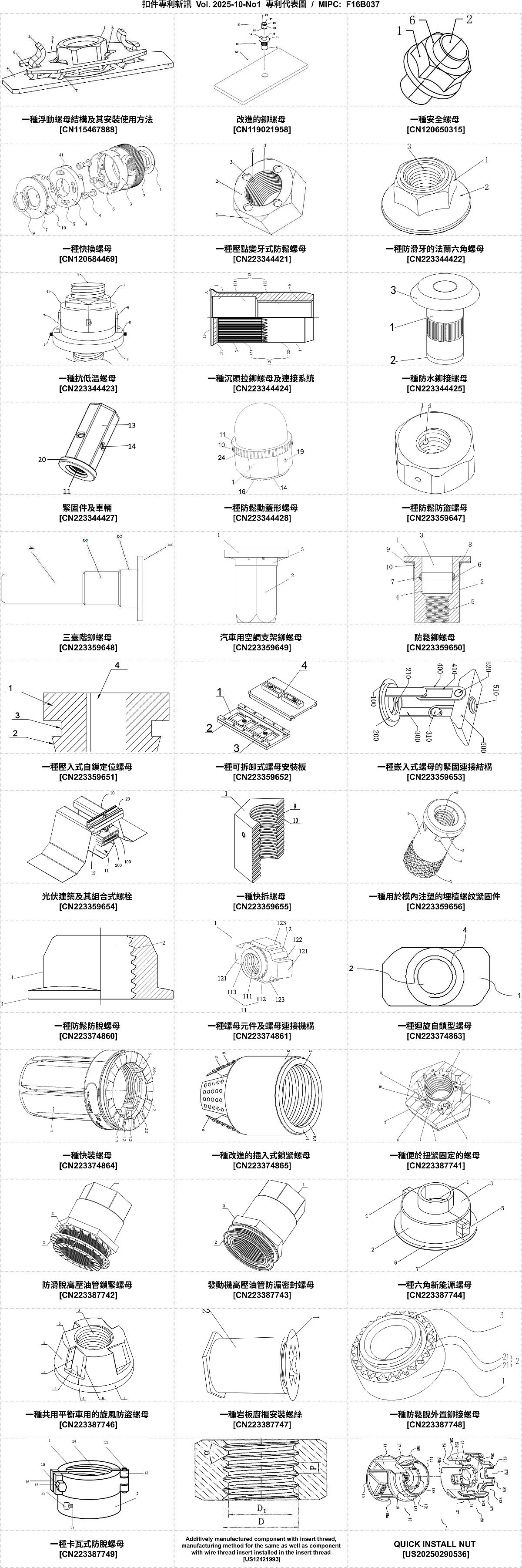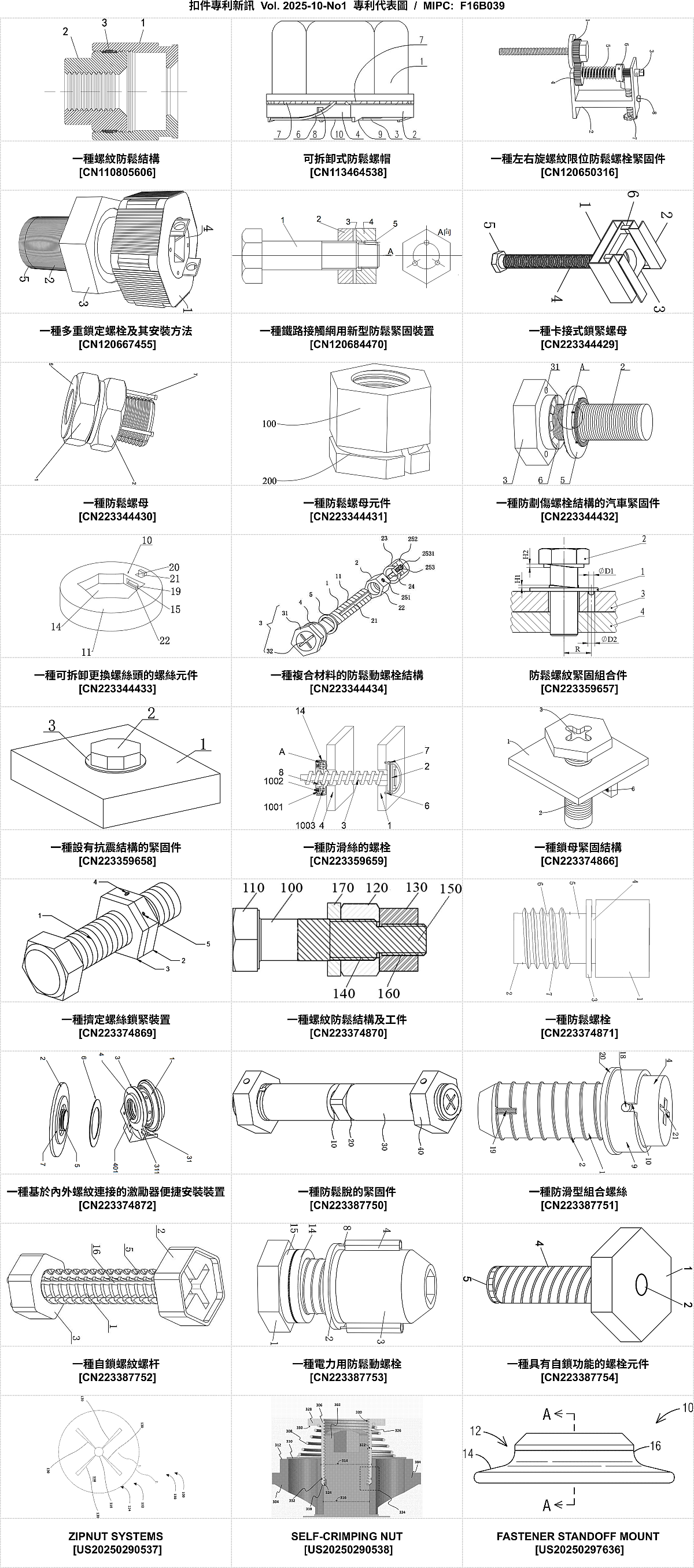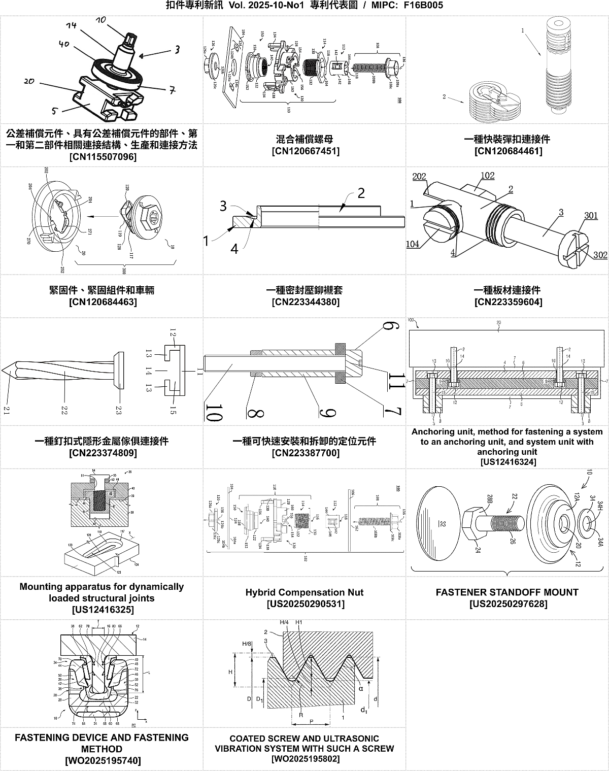 各位【台灣扣件產業服務雲】會員先進們大家好,與您分享本期 #扣件專利新訊 (2025-10-No1):