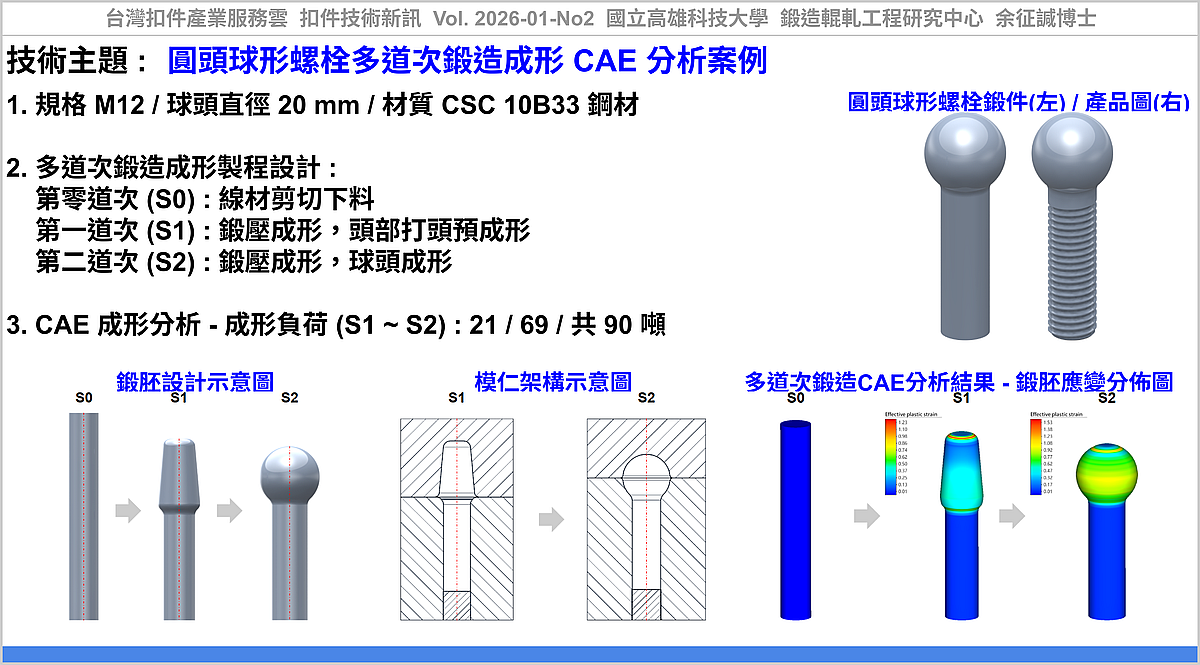 圓頭球形螺栓多道次鍛造成形 CAE 分析案例