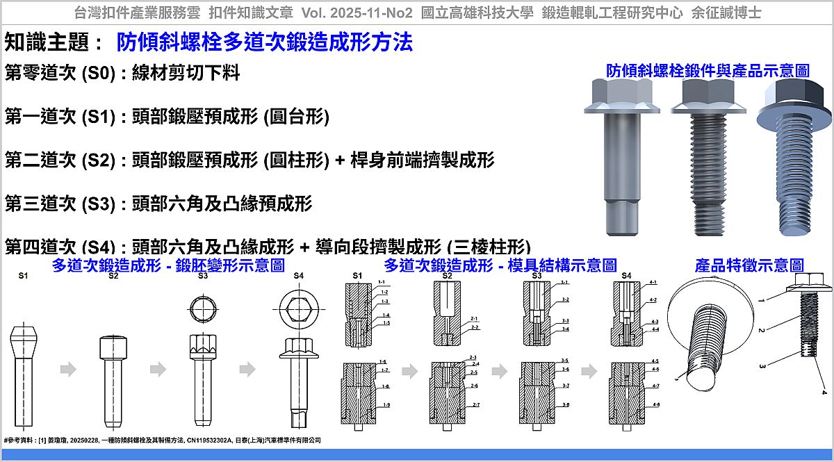- 2025-11-No2-扣件知識文章, 防傾斜螺栓多道次鍛造成形方法, https://www.tw-fastener.com/tfsc/knowledge/BLP_cfe00eee-2069-4684-b317-af49ac5a919e