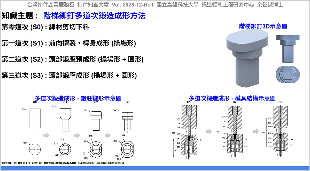 - 2025-12-No1-扣件知識文章, 階梯鉚釘多道次鍛造成形方法, https://www.tw-fastener.com/tfsc/knowledge/BLP_e89ba09c-e006-41d4-b126-e4e360cf8964