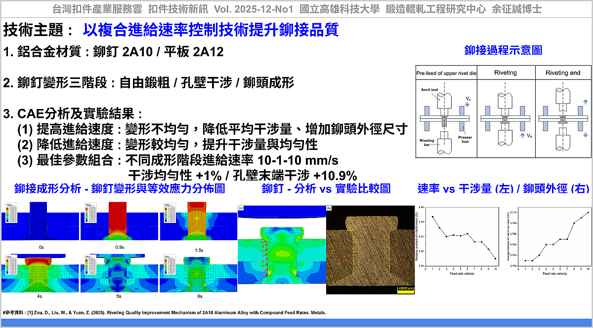 [2] 台灣扣件產業服務雲, 扣件技術新訊, Vol. 2025-12-No1, 以複合進給速率控制技術提升鉚接品質, https://www.tw-fastener.com/tfsc/knowledge/BLP_e0a16fad-3c40-4a50-81b9-519882a44e28