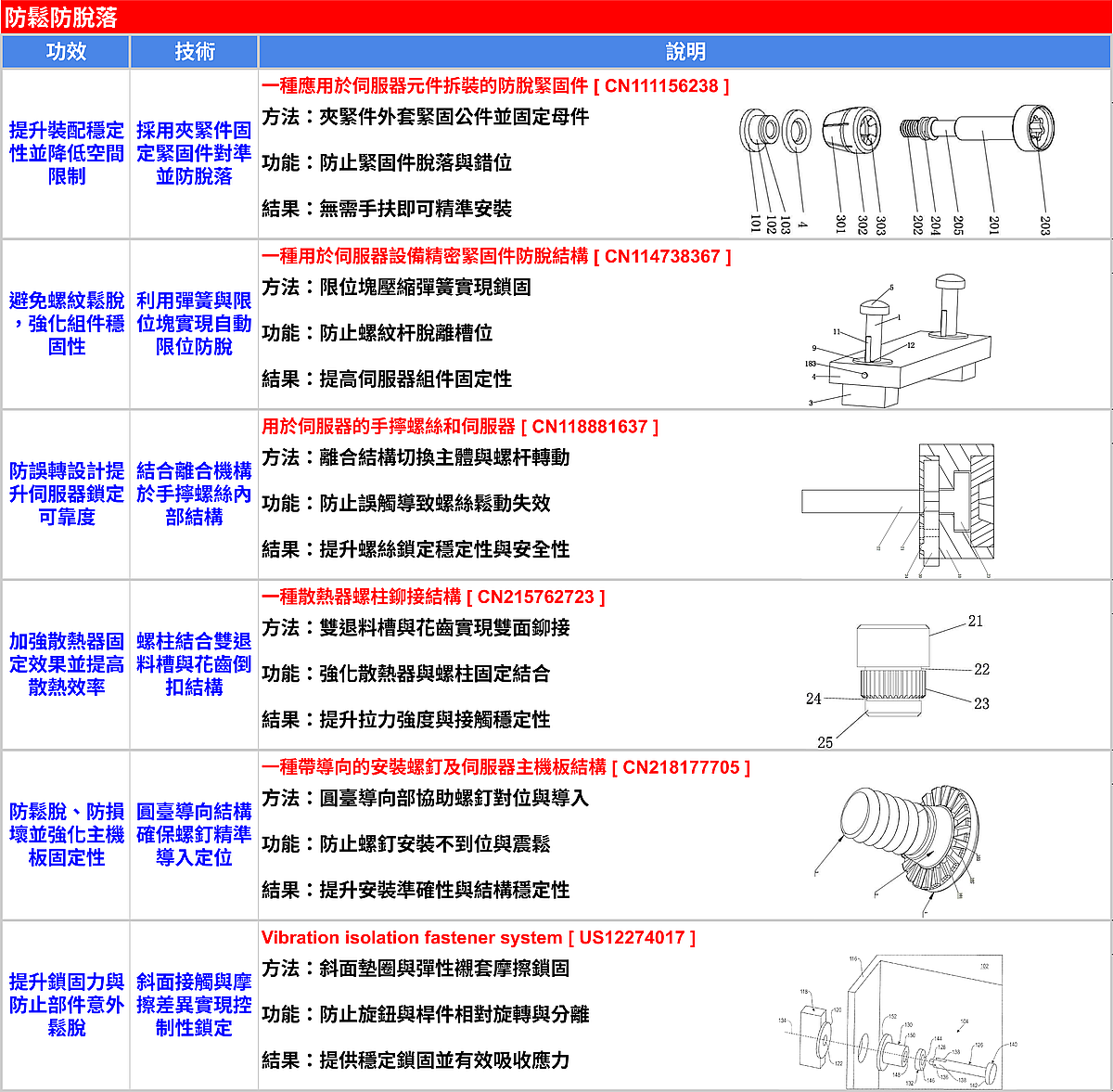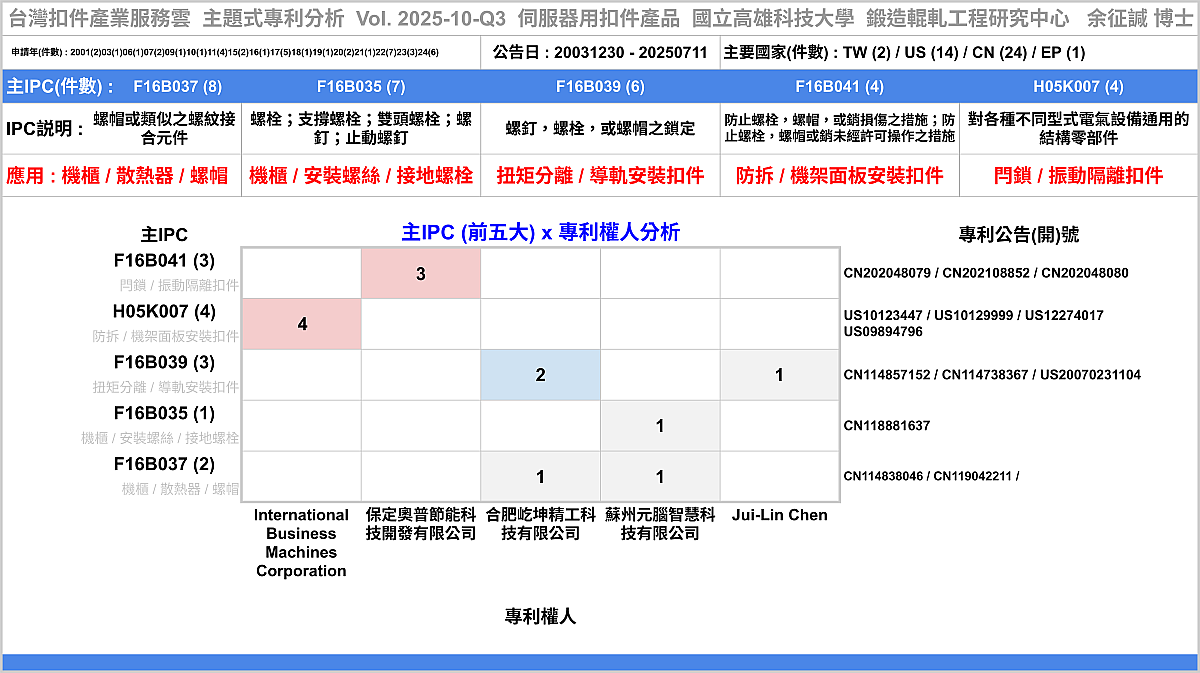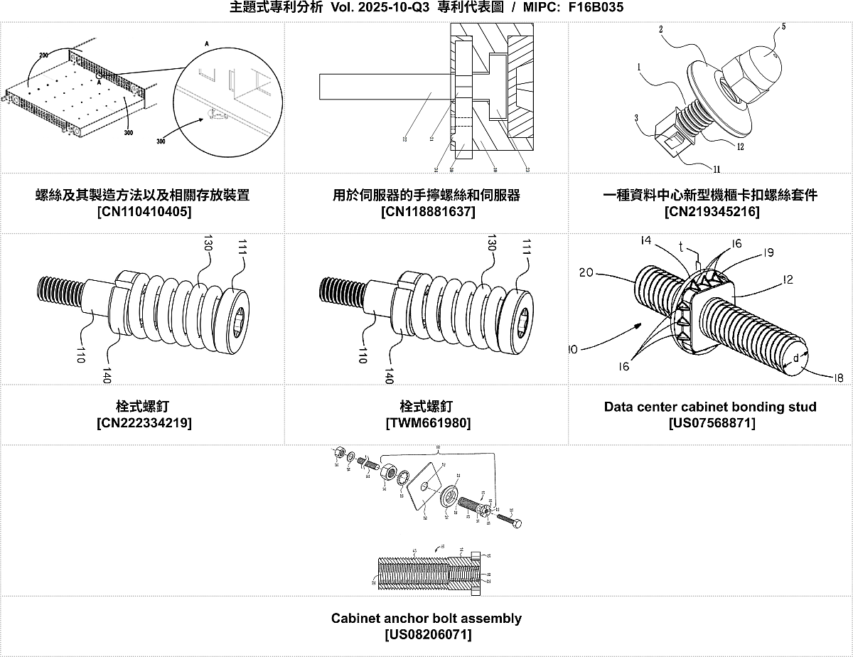 [1] 台灣扣件產業服務雲, 主題式專利分析, 伺服器用扣件產品, Vol. 2025-10-Q3, https://www.tw-fastener.com/tfsc/knowledge/BLP_f95282ac-9e47-48a3-8818-6d6c99b31aac